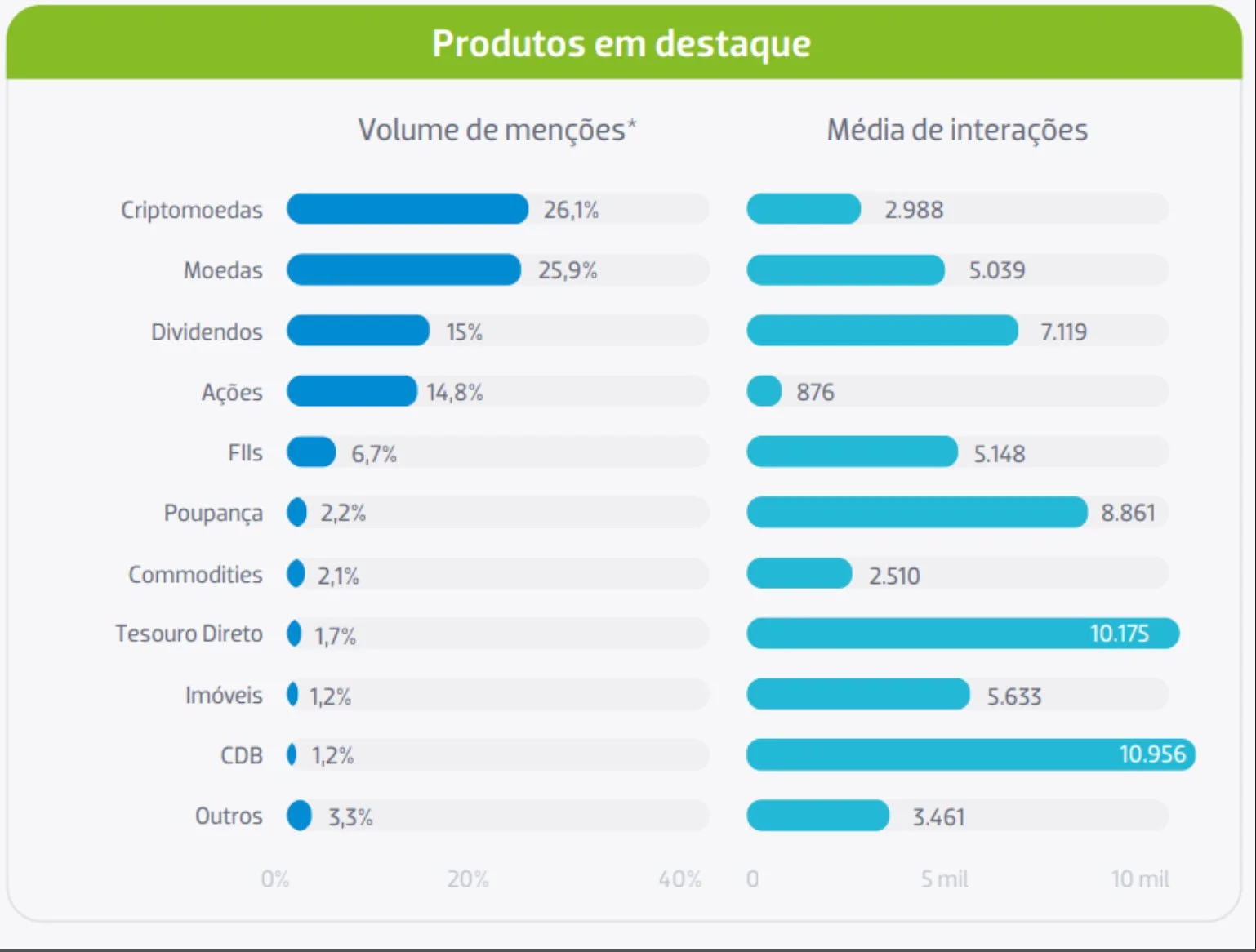 Cryptocurrencies were the most discussed products by financial influencers in Brazil during the first half of 2023, according to a study from Anbima. Roughly 26 percent of influencers’ posts discussed crypto. However, the overall quantity of crypto content produced was down from the second half of 2022. The Anbima report states: